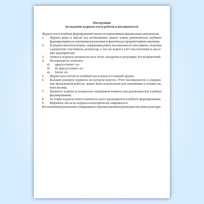 Журнал учета работы и посещаемости в клубном формировании (секции, клубе, кружке) в Сочи купить