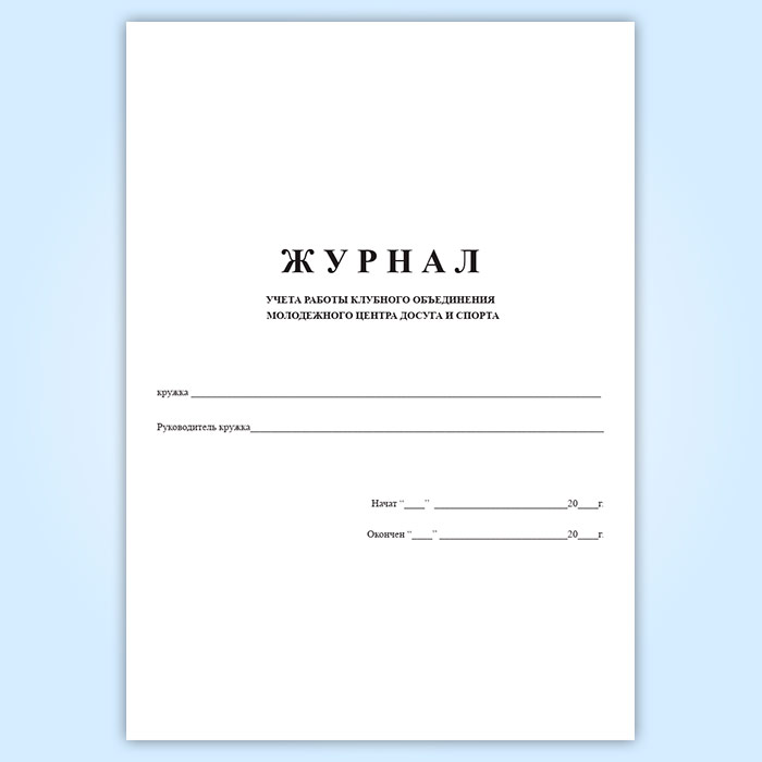 Журнал учета работы клубного объединения молодежного центра досуга и спорта в Сочи купить