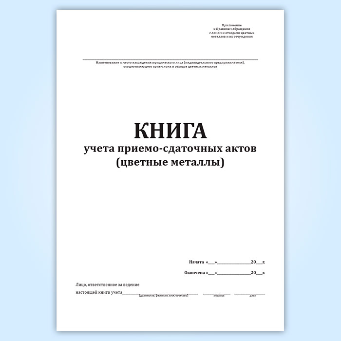 Книга учета приемо-сдаточных актов (цветные металлы) в Сочи купить