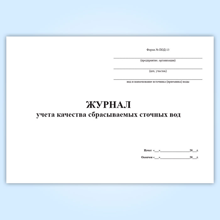 Журнал учета качества сбрасываемых сточных вод (форма ПОД-13) в Сочи купить