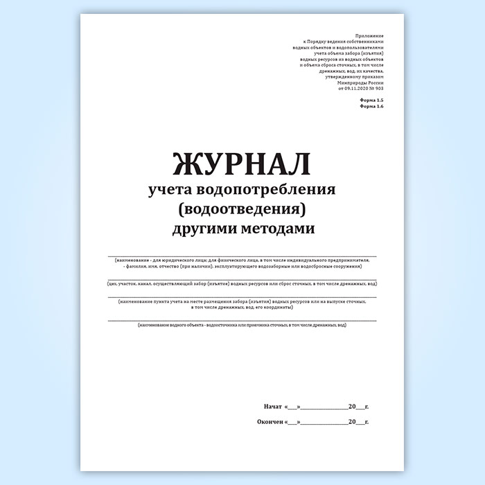 Журнал учета водопотребления (водоотведения) другими методами (форма 1.5, 1.6) в Сочи купить