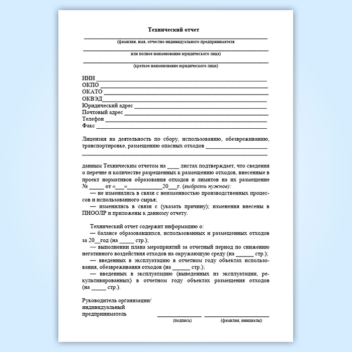 Технический отчет о неизменности производственного процесса, используемого сырья и об обращении с отходами в Сочи купить