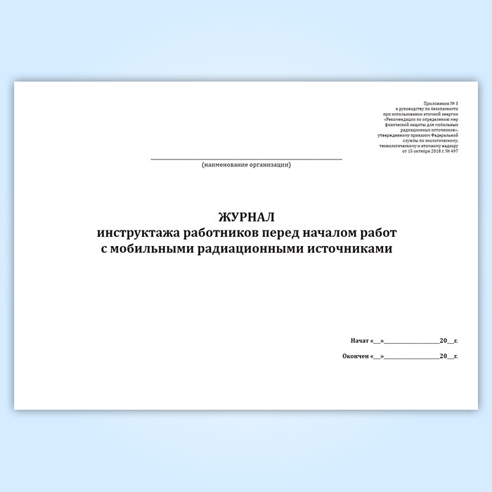 Журнал инструктажа работников перед началом работ с мобильными радиационными источниками в Сочи купить