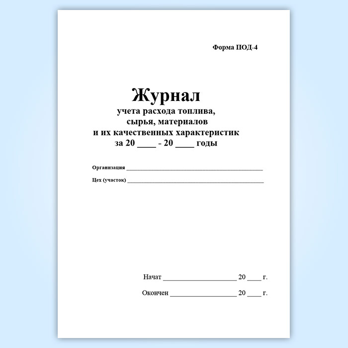 Журнал учета расхода топлива, сырья, материалов и их качественных характеристик (форма ПОД-4) в Сочи купить
