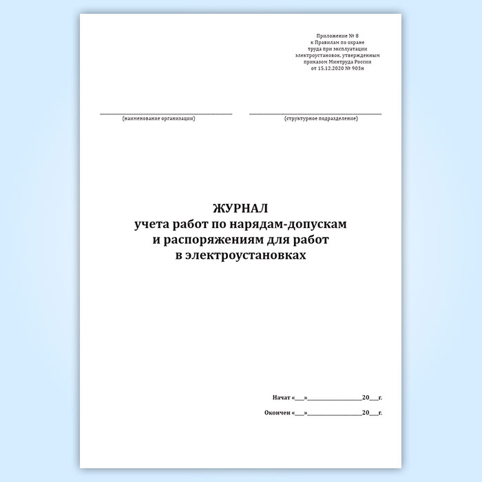 Журнал учета работ по нарядам-допускам и распоряжениям для работы в электроустановках в Сочи купить