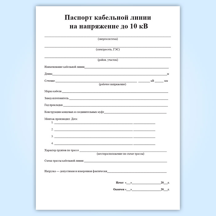 Паспорт кабельной линии на напряжение до 10 кВ в Сочи купить