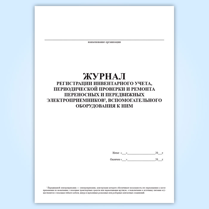 Журнал регистрации инвентарного учета, периодической проверки и ремонта переносных и передвижных электроприемников, вспомогательного оборудования к ним в Сочи купить