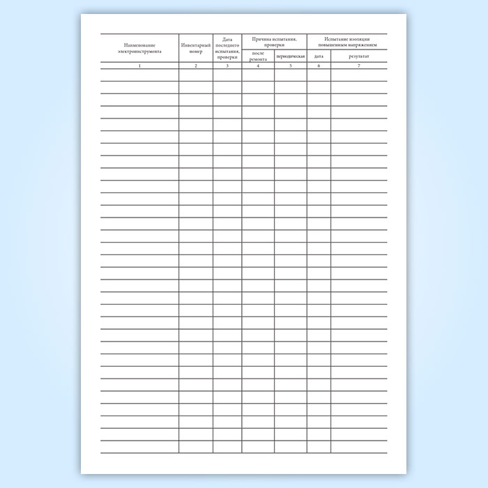 Журнал учета, проверки и испытания электроинструмента, трансформаторов, преобразователей частоты, и переносных светильников в Сочи купить