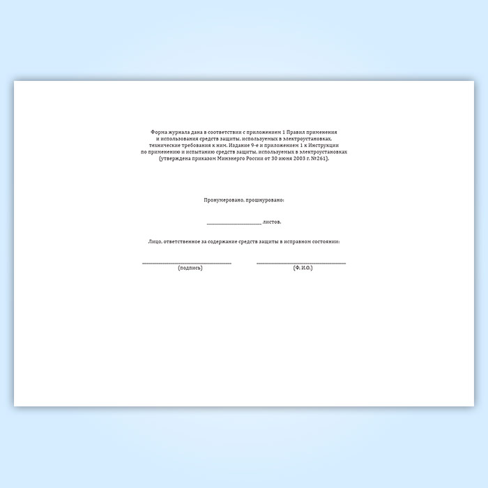 Журнал учета и содержания средств защиты (используемых в электроустановках) в Сочи купить