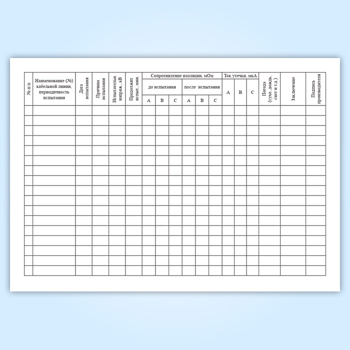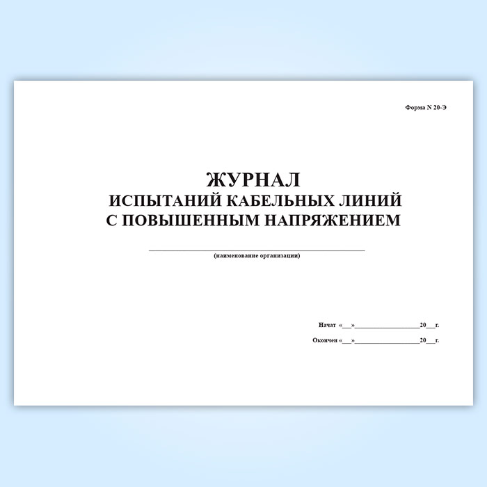 Журнал испытаний кабельных линий с повышенным напряжением (форма № 20-Э) в Сочи купить
