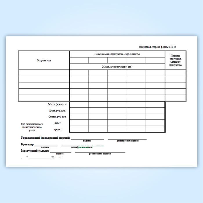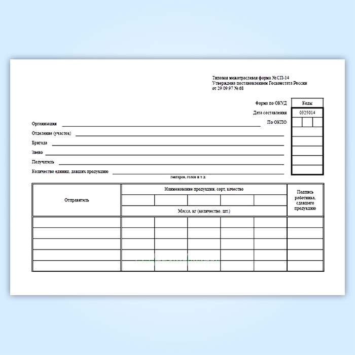 Дневник поступления сельскохозяйственной продукции (форма № СП-14) в Сочи купить