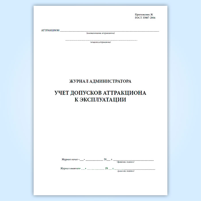 Журнал администратора. Учет допусков аттракциона к эксплуатации в Сочи купить