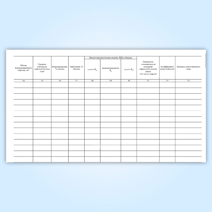 Журнал испытания проб асфальтобетонных смесей, взятых из смесителя (форма 10) в Сочи купить