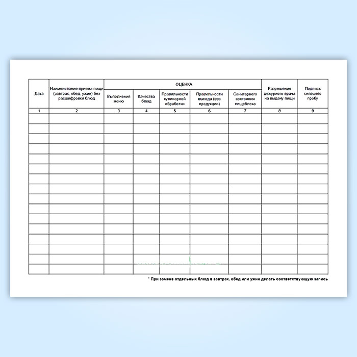 Журнал контроля за качеством готовой пищи (бракеражный журнал) в Сочи купить