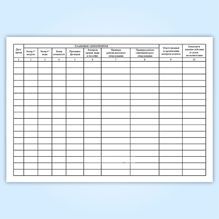 Журнал плановых мероприятий по бассейну в Сочи купить