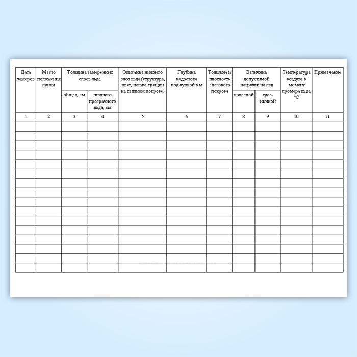 Журнал промеров толщины льда и определения грузоподъемности ледяного покрова в Сочи купить