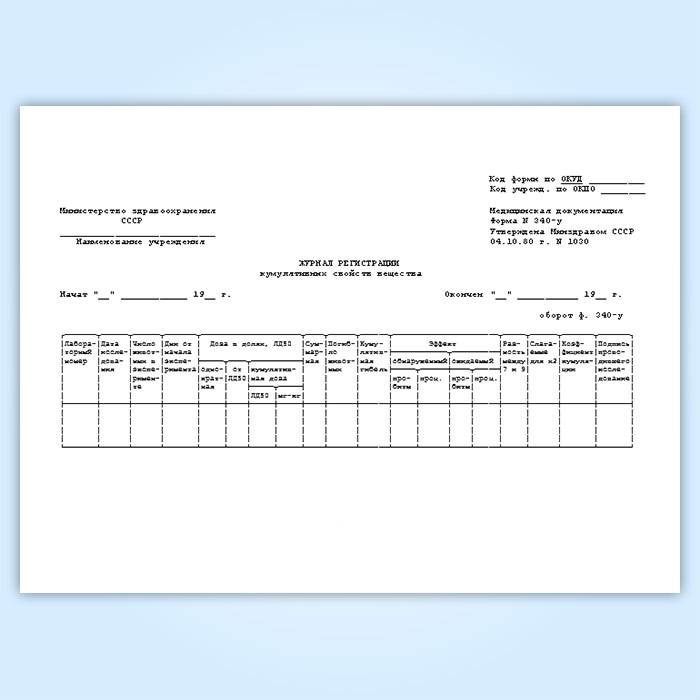 Журнал регистрации кумулятивных свойств вещества (форма № 340-у) в Сочи купить
