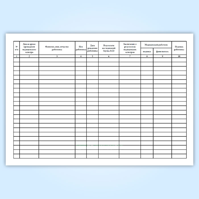 Журнал регистрации предрейсовых, предсменных медицинских осмотров (Приказ Минздрава РФ от 15 декабря 2014 г. N 835н) в Сочи купить