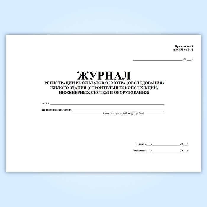 Журнал регистрации результатов осмотра (обследования) жилого здания (строительных конструкций, инженерных систем и оборудования). (Приложение к форме ЖНМ-96-01/1) в Сочи купить