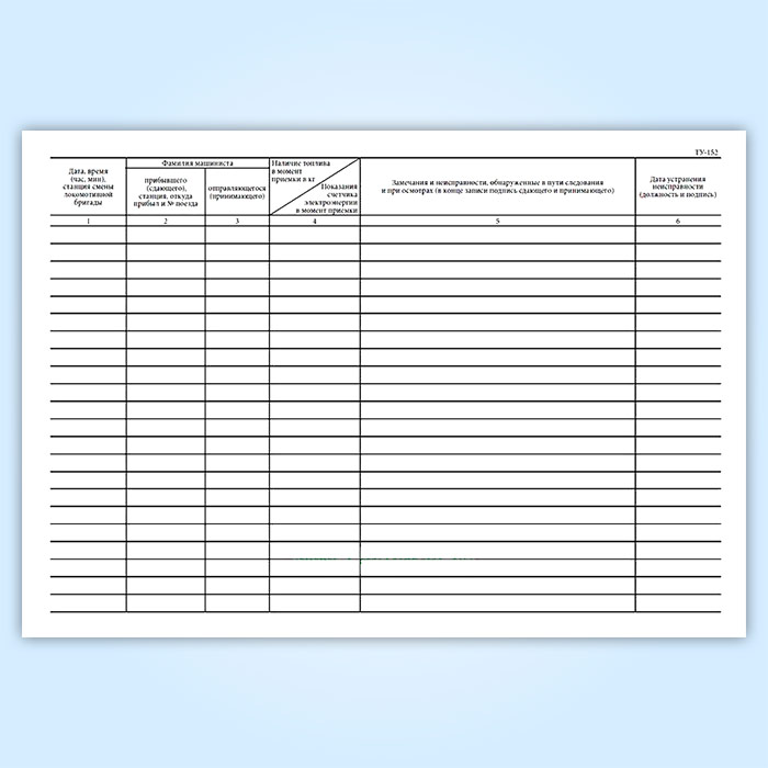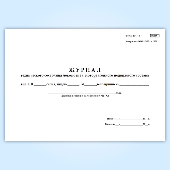 Журнал технического состояния локомотива, моторвагонного подвижного состава (форма № ТУ-152) в Сочи купить