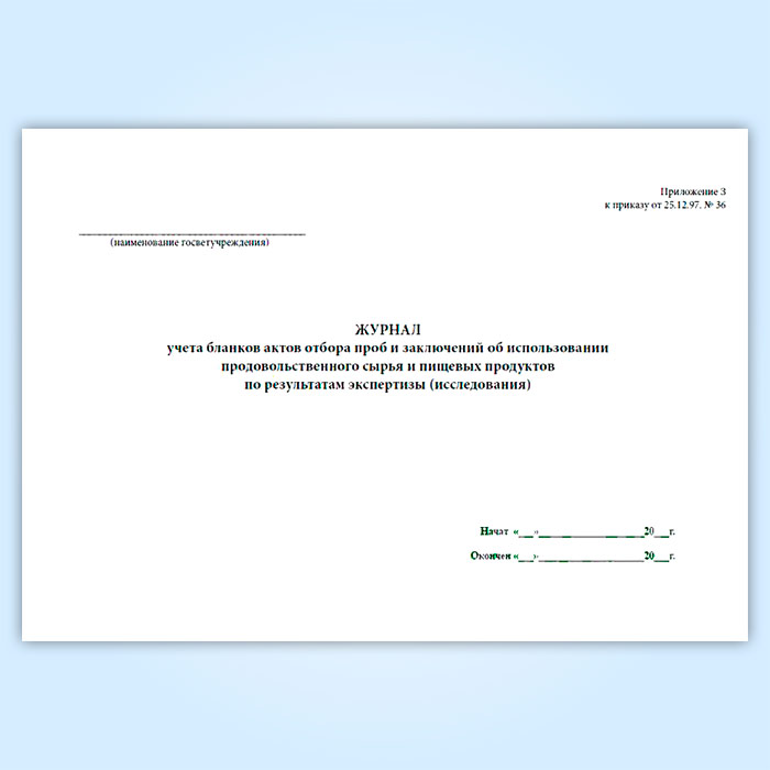 Журнал учета бланков отбора проб и заключений об использовании продовольственного сырья и пищевых продуктов в Сочи купить