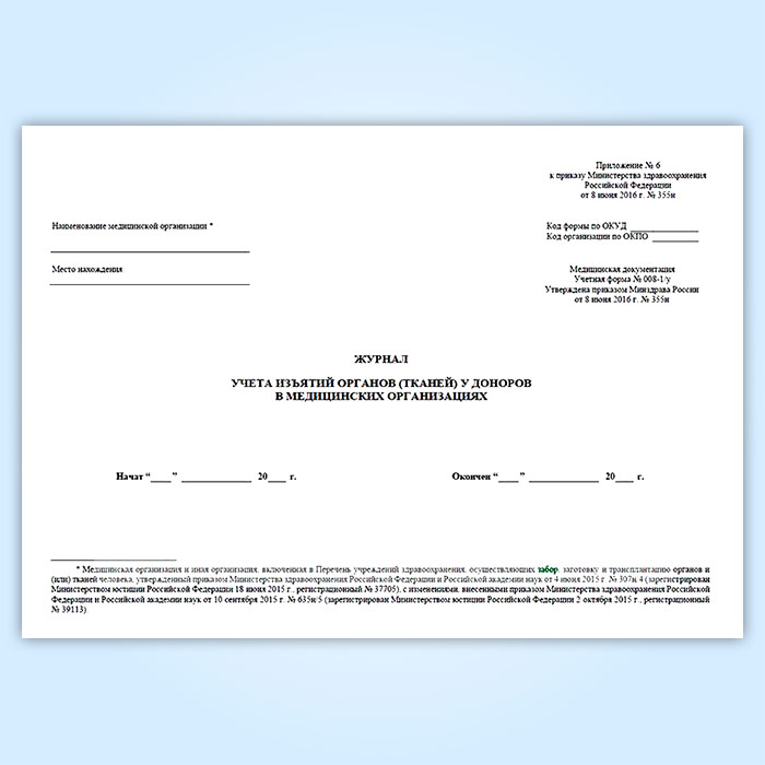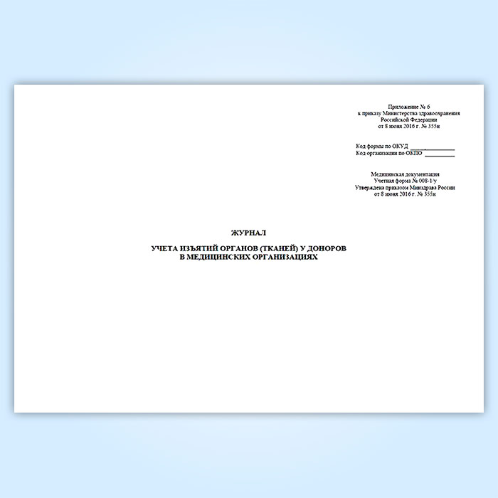 Журнал учета изъятий органов (тканей) у доноров в медицинских организациях (форма № 008-1/у) в Сочи купить