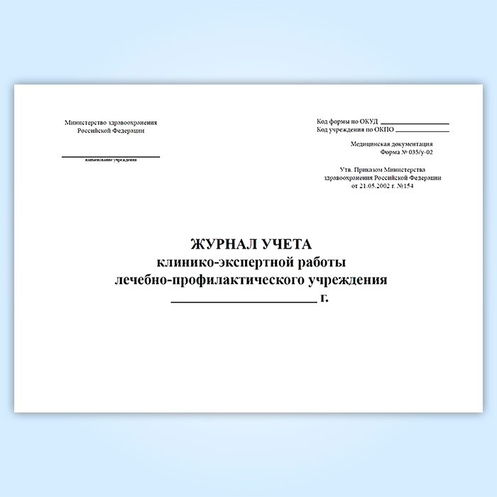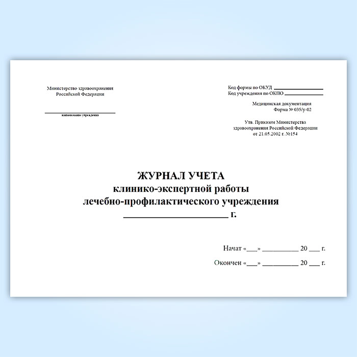Журнал учета клинико-экспертной работы лечебно-профилактического учреждения (форма № 035/у-02) в Сочи купить