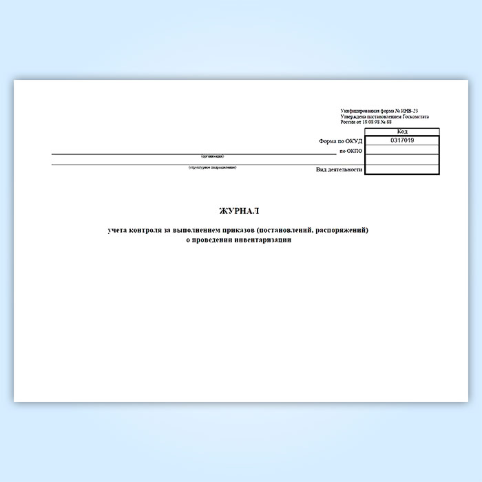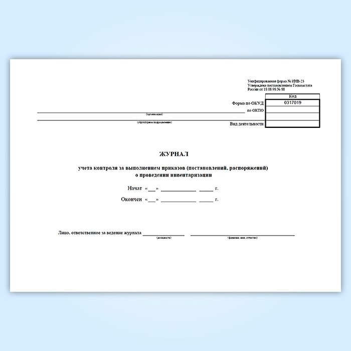 Журнал учета контроля за выполнением приказов (постановлений, распоряжений) о проведении инвентаризации (унифицированная форма ИНВ-23) в Сочи купить