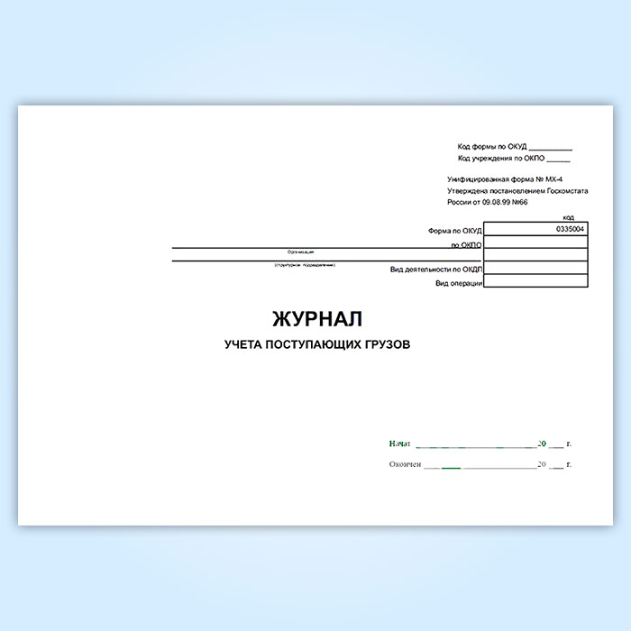 Журнал учета поступающих грузов (форма МХ-4) в Сочи купить