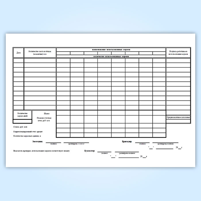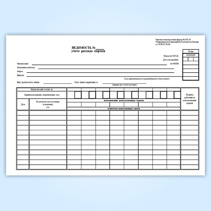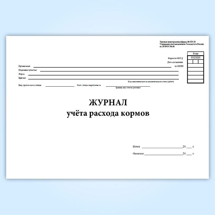 Журнал учета расхода кормов (форма № СП-20) в Сочи купить