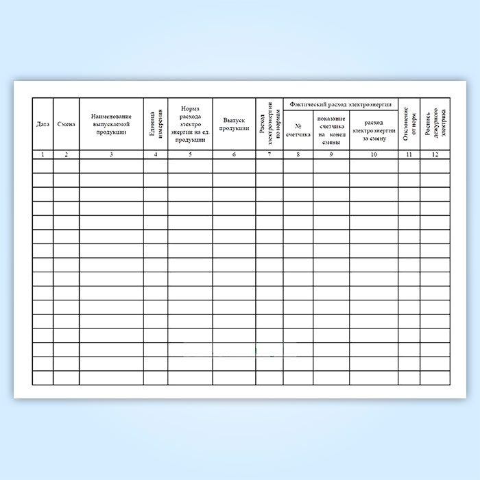 Журнал учета расхода электроэнергии (за смену) в Сочи купить