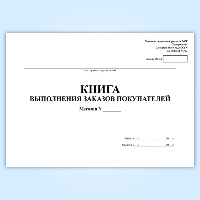 Книга выполнения заказов покупателей (специализированная форма № 8-РТ) в Сочи купить