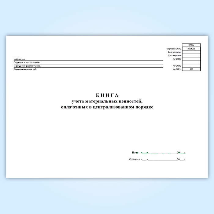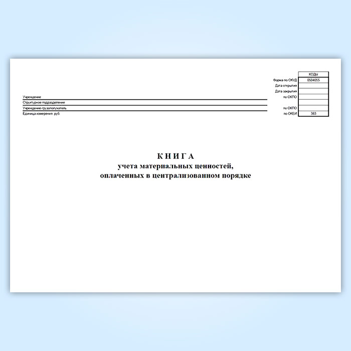 Книга учета материальных ценностей, оплаченных в централизованном порядке (код формы 0504055) в Сочи купить