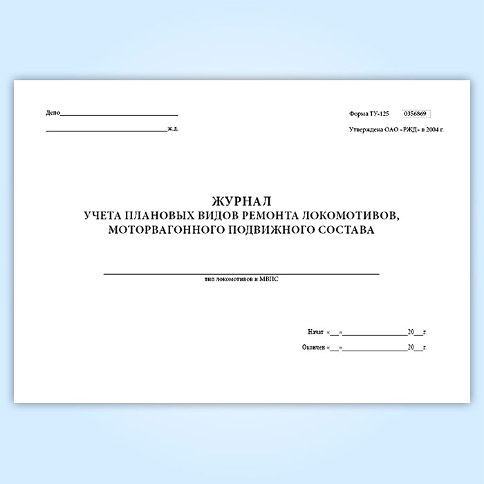Книга учета плановых видов ремонта локомотивов, моторвагонного подвижного состава (форма ТУ-125) в Сочи купить
