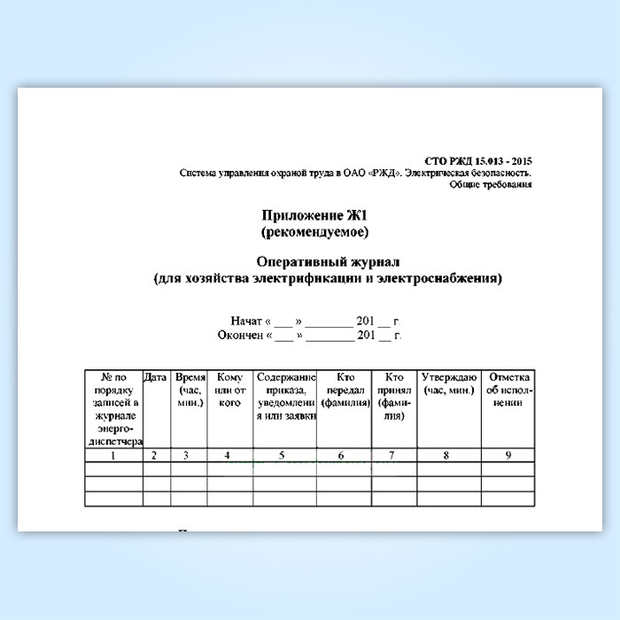 Оперативный журнал (для хозяйства электрификации и электроснабжения) (СТО РЖД 15.013-2015) в Сочи купить