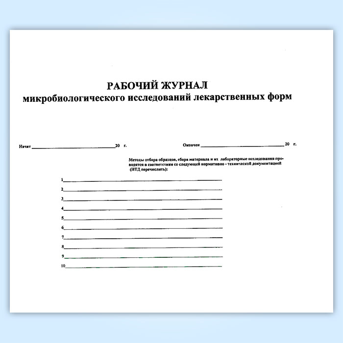 Рабочий журнал микробиологических исследований лекарственных форм (382/у) в Сочи купить