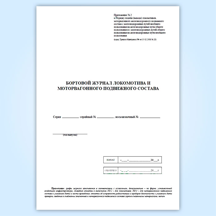 Бортовой журнал локомотива и моторвагонного подвижного состава в Сочи купить