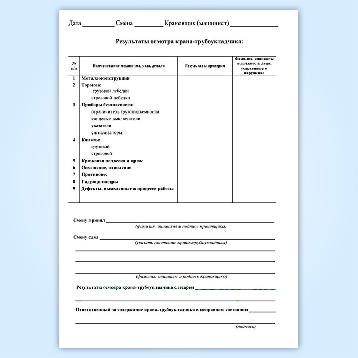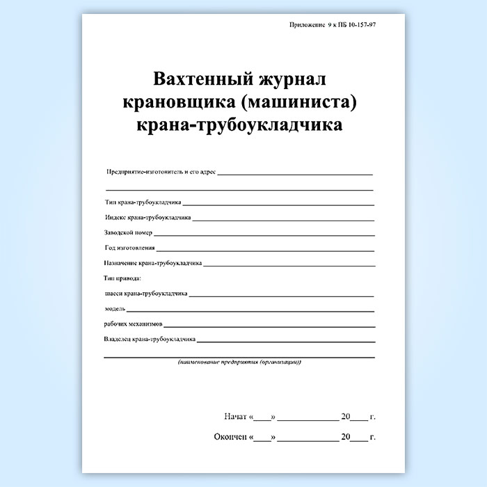 Вахтенный журнал крановщика (машиниста) крана-трубоукладчика в Сочи купить
