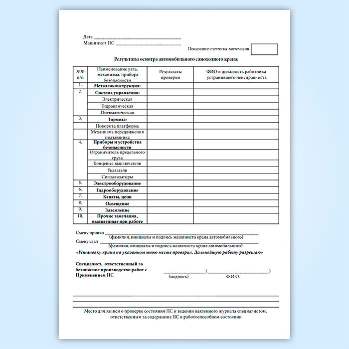 Вахтенный журнал машиниста автомобильного стрелового крана в Сочи купить