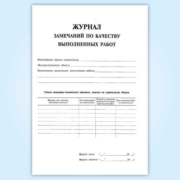 Журнал замечаний по качеству выполненных работ в Сочи купить