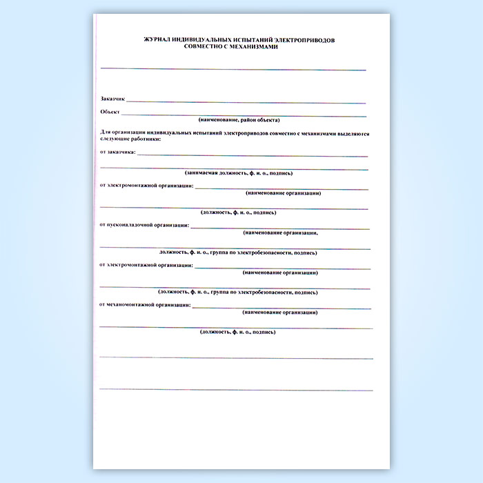 Журнал индивидуальных испытаний электроприводов совместно с механизмами в Сочи купить