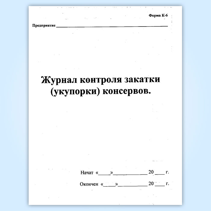 Журнал контроля закатки (укупорки) консервов (форма К-6) в Сочи купить