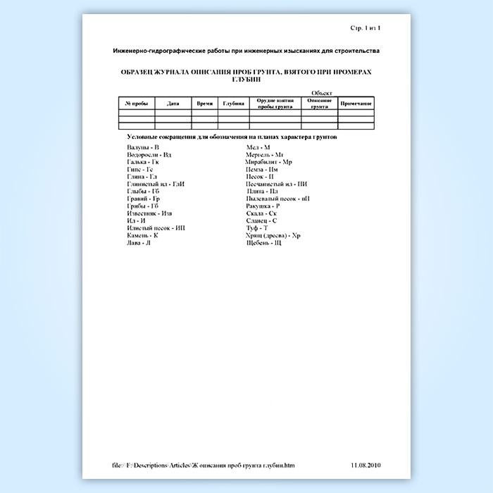 Журнал описания проб грунта, взятого при промерах в Сочи купить