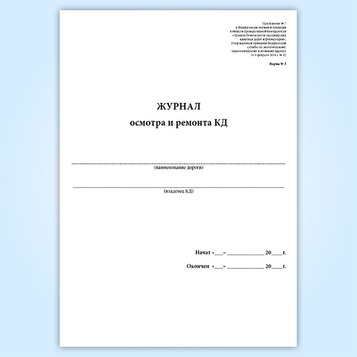 Журнал осмотра и ремонта канатной дороги. Натяжной канат к несущему канату (форма № 3) в Сочи купить