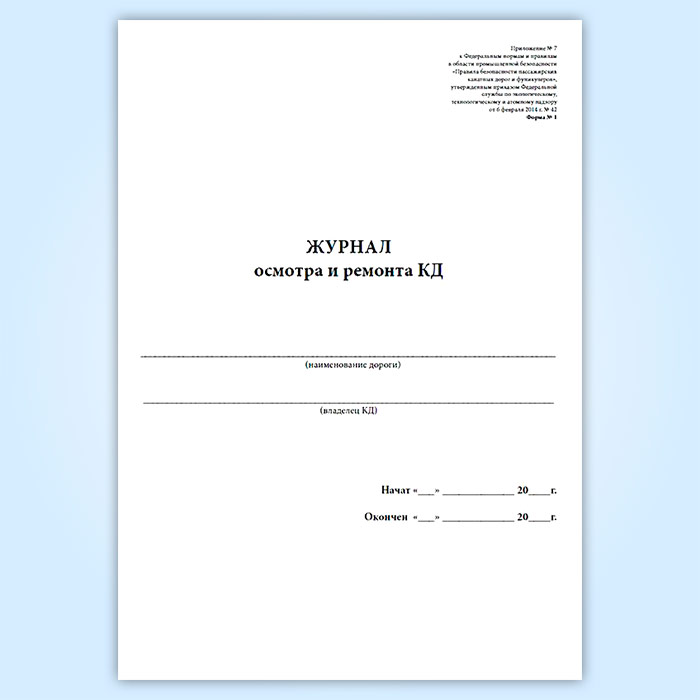 Журнал осмотра и ремонта канатной дороги. Несущий канат (форма № 1) в Сочи купить