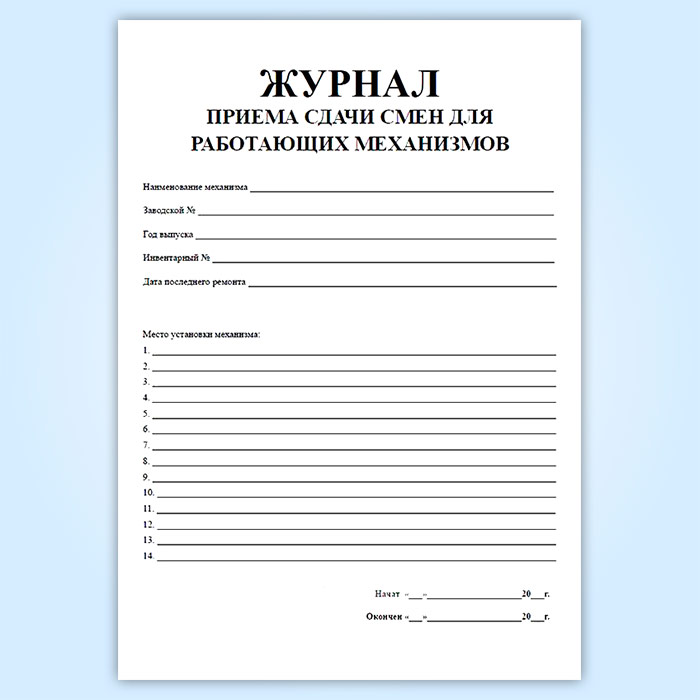 Журнал приема-сдачи смен для работающих на механизмах в Сочи купить
