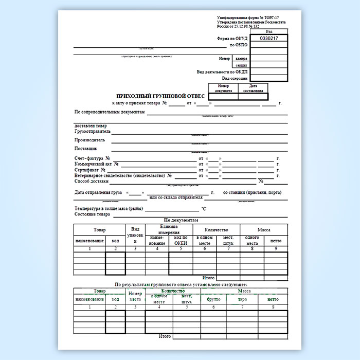 Журнал приходный групповой отвес (форма № ТОРГ-17) в Сочи купить