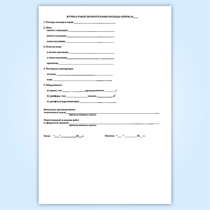 Журнал работ по опусканию колодца опоры в Сочи купить