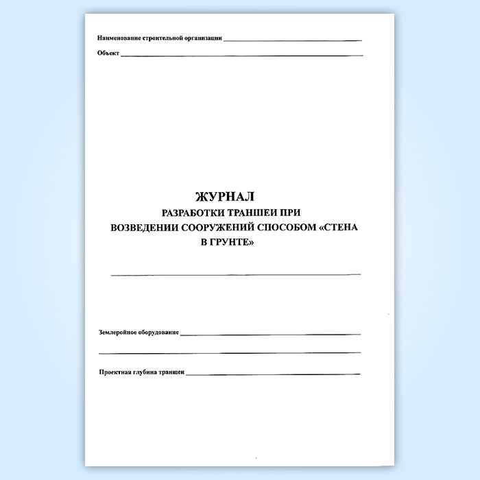 Журнал разработки траншеи при возведении сооружений способом «стена в грунте» в Сочи купить