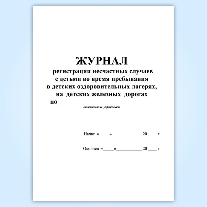 Журнал регистрации несчастных случаев с детьми во время пребывания в детских оздоровительных лагерях, на детских железных дорогах в Сочи купить
